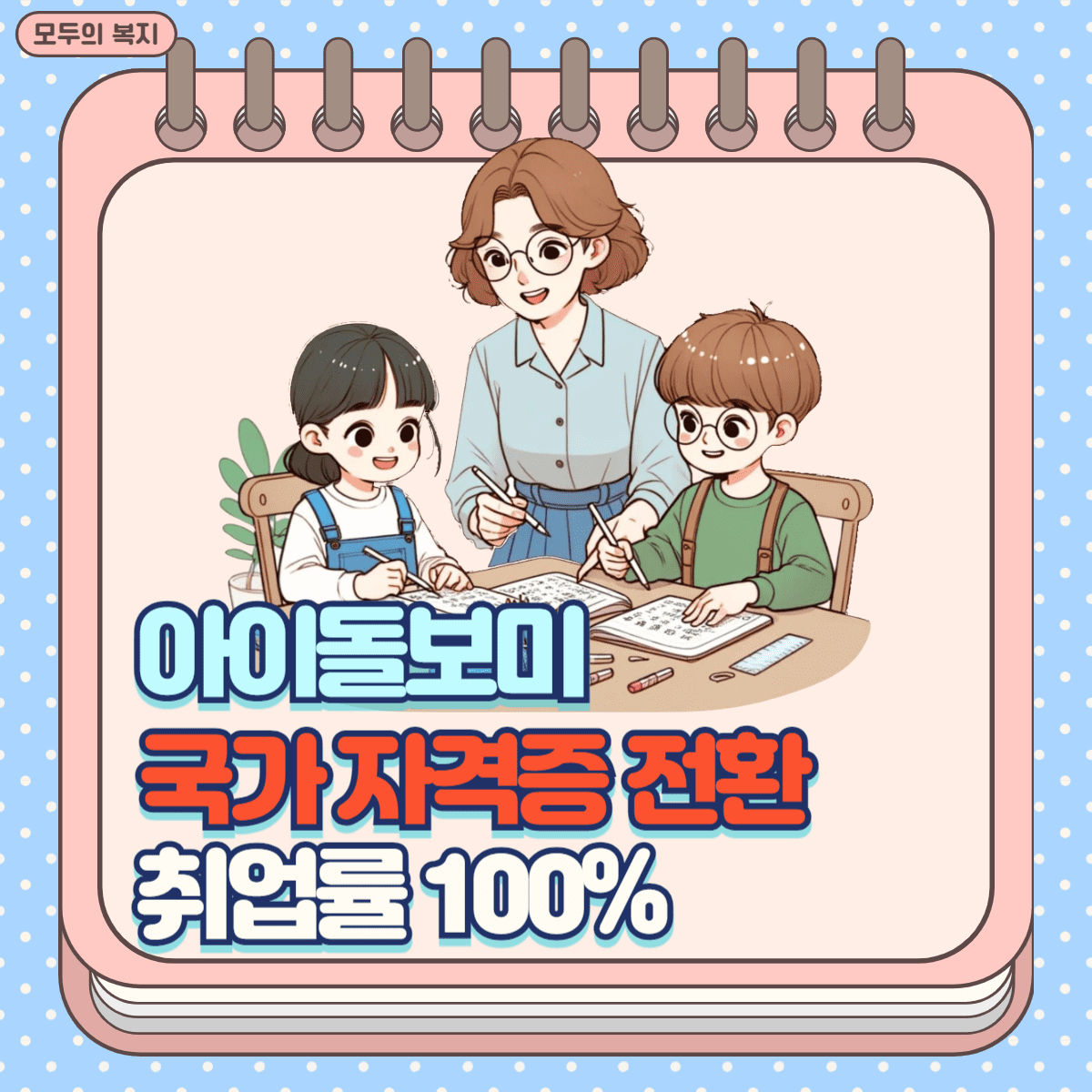아이돌보미 국가자격증 취득은 전문 돌봄 인력으로서 취업과 커리어 전환에 큰 도움이 됩니다. 돌봄 서비스 분야는 노인, 장애인, 아동 등 다양한 대상에게 필수적인 서비스를 제공하며, 인구 고령화와 사회복지 수요 증가에 힘입어 취업 정보와 채용 공고가 꾸준히 올라오고 있습니다.