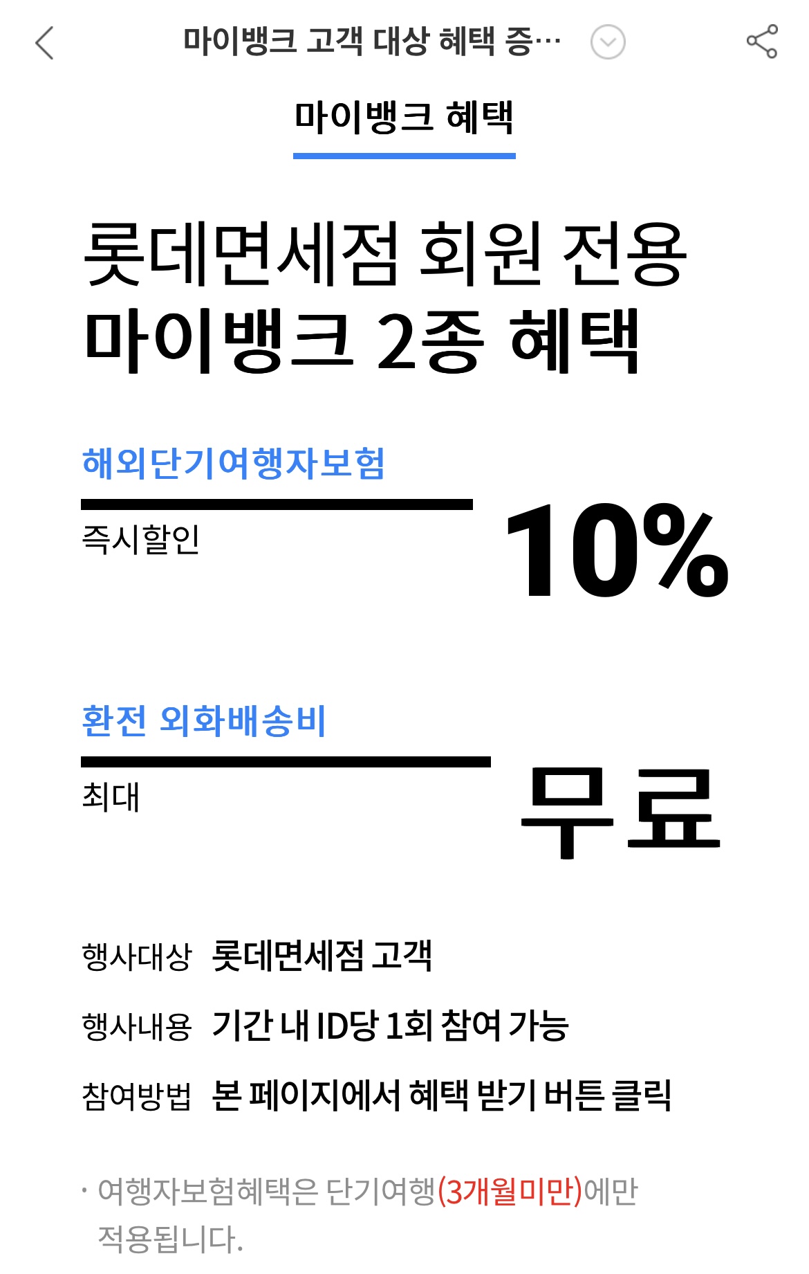 주요 키워드: 마이뱅크, 여행자보험, 쿠폰, 할인 쿠폰, 온라인 신청, 앱 서비스, 이벤트, 프로모션, 보험 가입, 보험료 할인