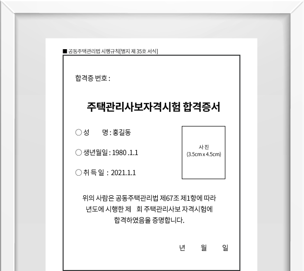 주택관리사 자격증은 아파트, 주택 단지, 상가 등 다양한 건물의 관리와 운영을 담당하는 전문가로서 필요한 자격을 갖추기 위한 시험을 통과한 후 발급되는 자격증입니다. 이 자격증을 소지하면, 주택 관리업무를 맡을 수 있으며, 공동주택 관리 및 관련된 법규를 적용하고 운영을 효율적으로 할 수 있습니다.