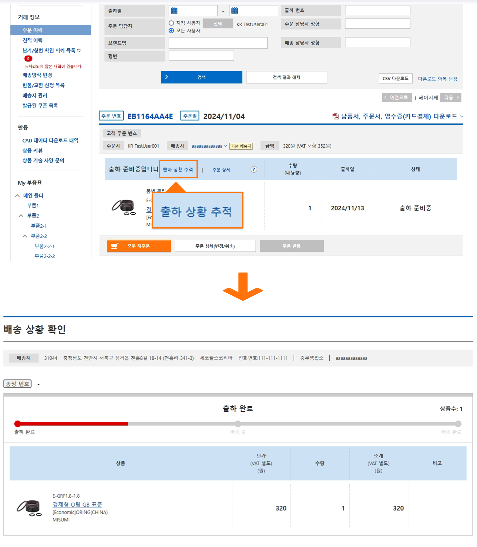 - 배송 단계 확인: 택배조회를 통해 택배의 접수 상태, 운송 중, 배송 완료 등 각 단계의 정보를 확인할 수 있습니다. 또한, 배송 주소와 도착 예정일 등도 표시되어 있어, 예상 배송 시간을 미리 알 수 있습니다.